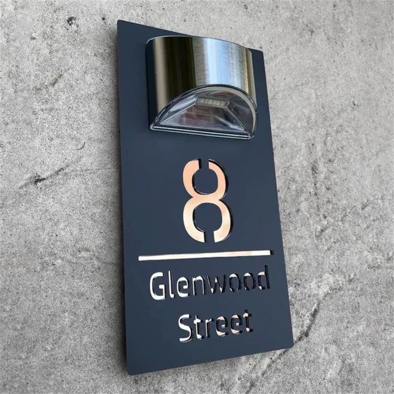 Verleihen Sie der Außenseite Ihres Hauses mit unserem exquisiten Solarleuchten-Hausschild mit Lasergravur eine Note von Raffinesse. Mit einem zweilagigen Hohlraum-Design vereint dieses einzigartige Schild Praktikabilität mit künstlerischem Flair.